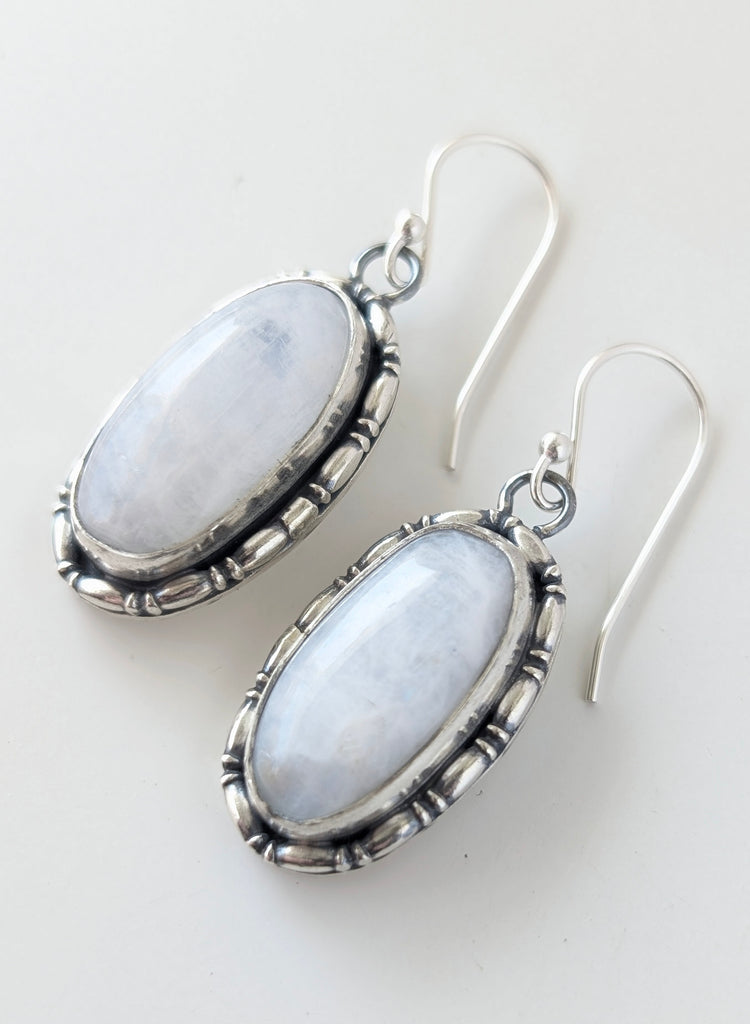 This is a one-of-a-kind earring set. Both earrings were built from sterling silver with fine silver bezel. If dropped, the stones could break.