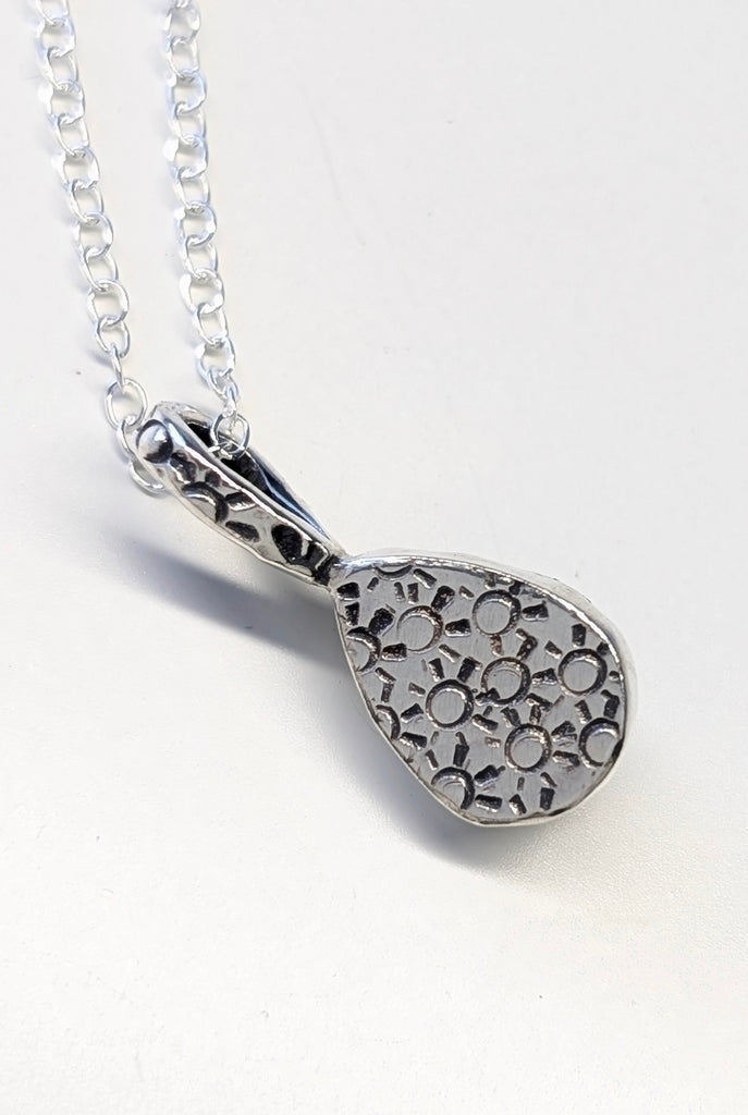 This pendant was soldered, filed, sanded, and polished. It feels soft and smooth to the touch. All processes were completed by hand and with love.