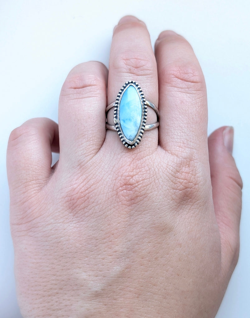 This is a one-of-a-kind ring. The entire setting was built from sterling silver. The stone was set by hand. If dropped, the stone could break.