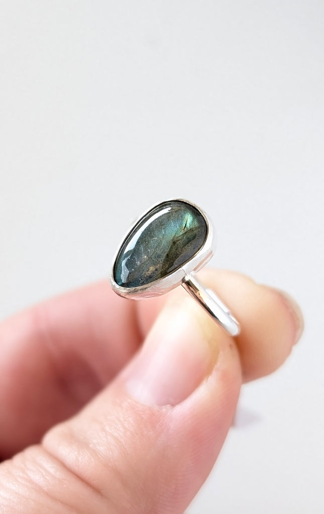 This ring was soldered, filed, sanded, and polished. It feels soft and smooth to the touch. All processes were completed by hand and with love.