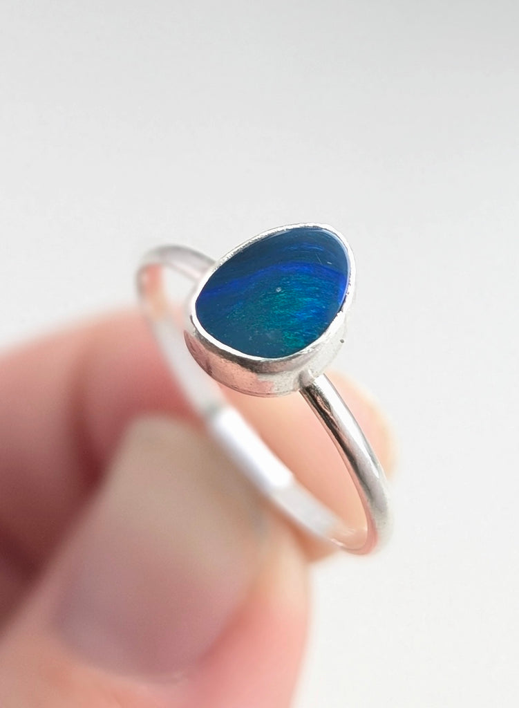 This is a one-of-a-kind ring. The entire setting was built from sterling silver. The stone was set by hand. If dropped, the stone may break.