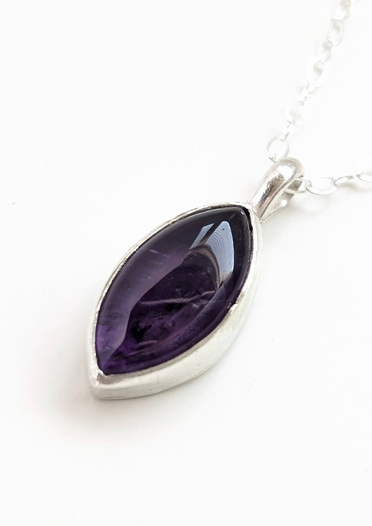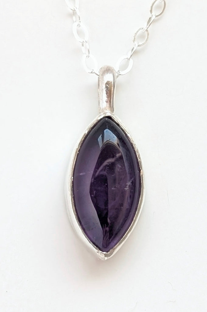 This is a one-of-a-kind necklace. It was built from sterling silver with fine silver bezel. If dropped, the stone could break. A 16" chain is provided.