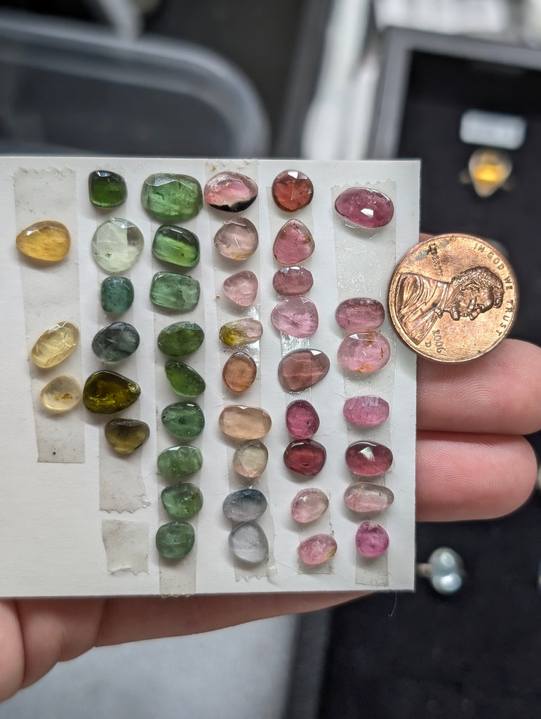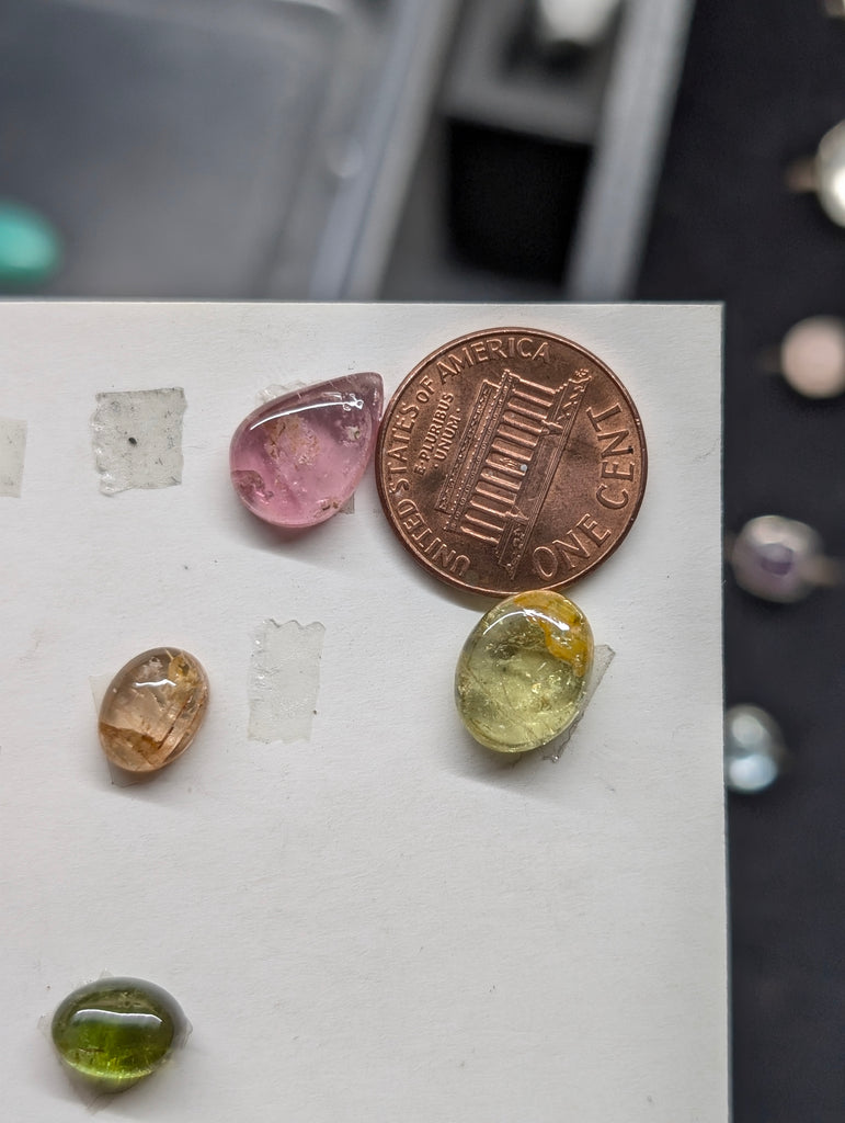 The first item is a little storm cloud tourmaline made into a ring. This ring will have no border and a 14g stacker band. Ring in size: 9. This piece will be $48