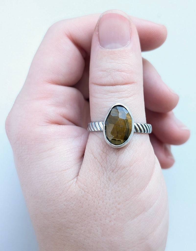 This ring was soldered, filed, sanded, and polished. It feels soft and smooth to the touch. All processes were completed by hand and with love.
